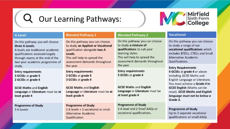 At The MFG, we offer a 7-Year journey, from Year 7 to Year 13. Our sixth form college, Mirfield College, provides an exceptional, student-centred post-16 experience across a broad range of A-level and BTEC courses.