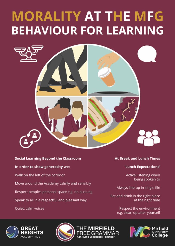 To ensure that the Academy’s expectations are clear to all stakeholders, the Morality Behaviour for Learning expectations are clearly displayed around the Academy. When choosing not to follow these expectations, students will face a consequence. Students are expected to take responsibility for their own behaviour and accept the consequence when they make poor choices. Students who consistently breach the Academy’s standards may find themselves banned from taking part in additional enrichment opportunities such as trips/visits, rewards, school productions and representing the Academy in any sporting event or other activity.