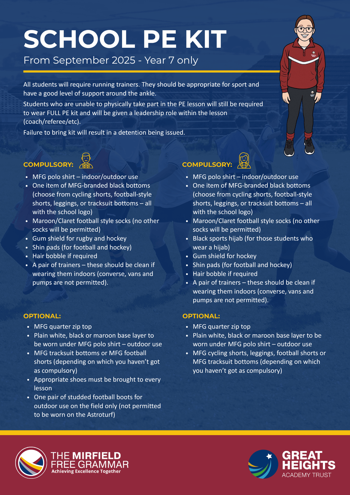 Year 7 PE Kit under further consultation. Please see letter for more information: